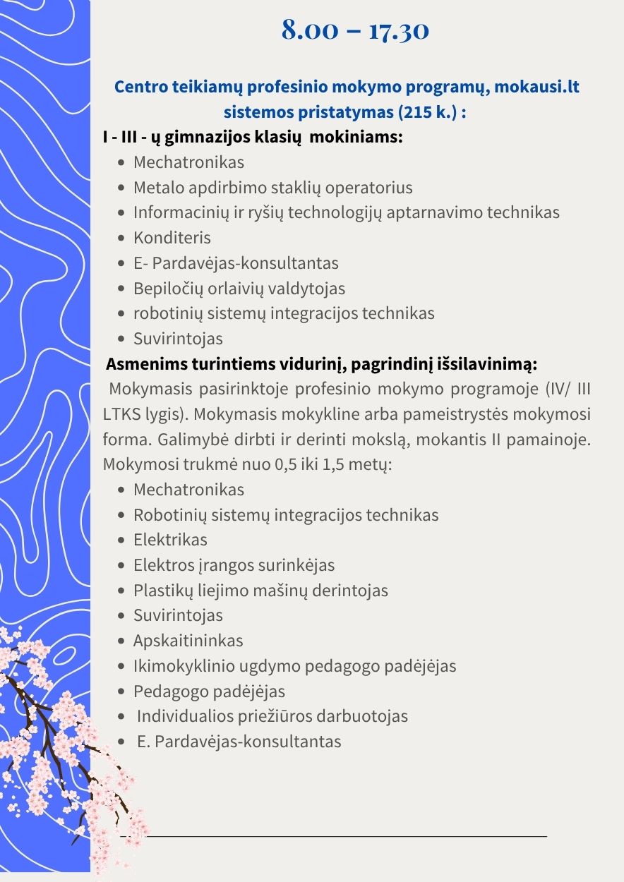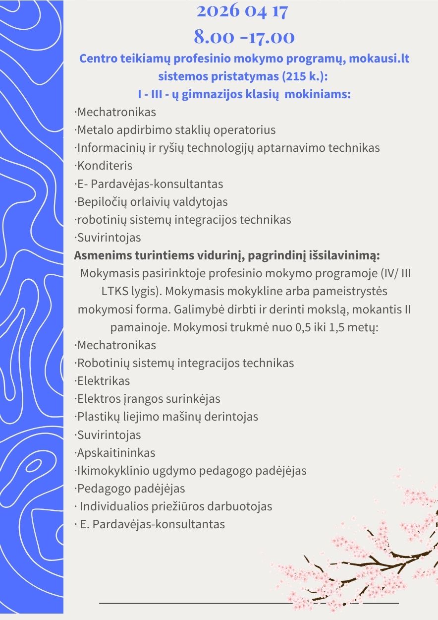 - Automatinių sistemų mechatronikas (2026 M. PRIĖMIMAS)